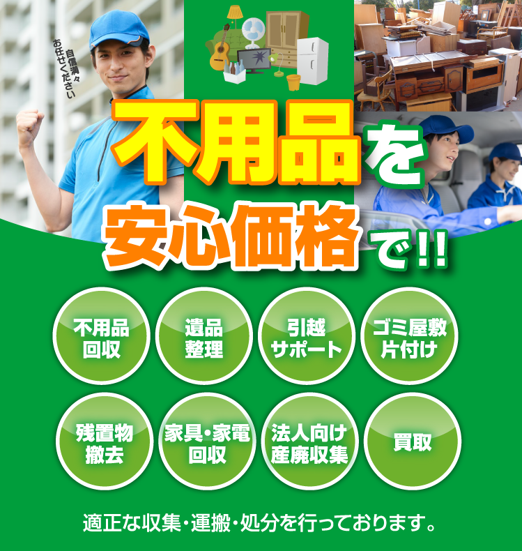 適正な収集・運搬・処分を行っております。万が一の請負業者賠償責任保険(三井住友海上)に加盟しております。